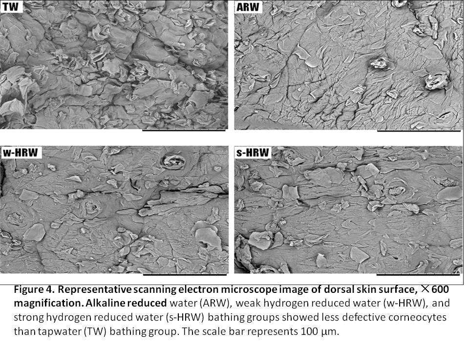 研究中設計了三種治療組,分別是普通鹼性電解水,低濃度氫氣水和高濃度氫氣水,雖然低濃度氫氣水的還原性(ORP)比普通鹼性電解水低,但從各類指標上看,氫氣水的效果比鹼性電解水更理想。研究缺少應該有的對照,例如非紫外線照射組、單純沐浴組。限制了該研究的客觀性和全面性。